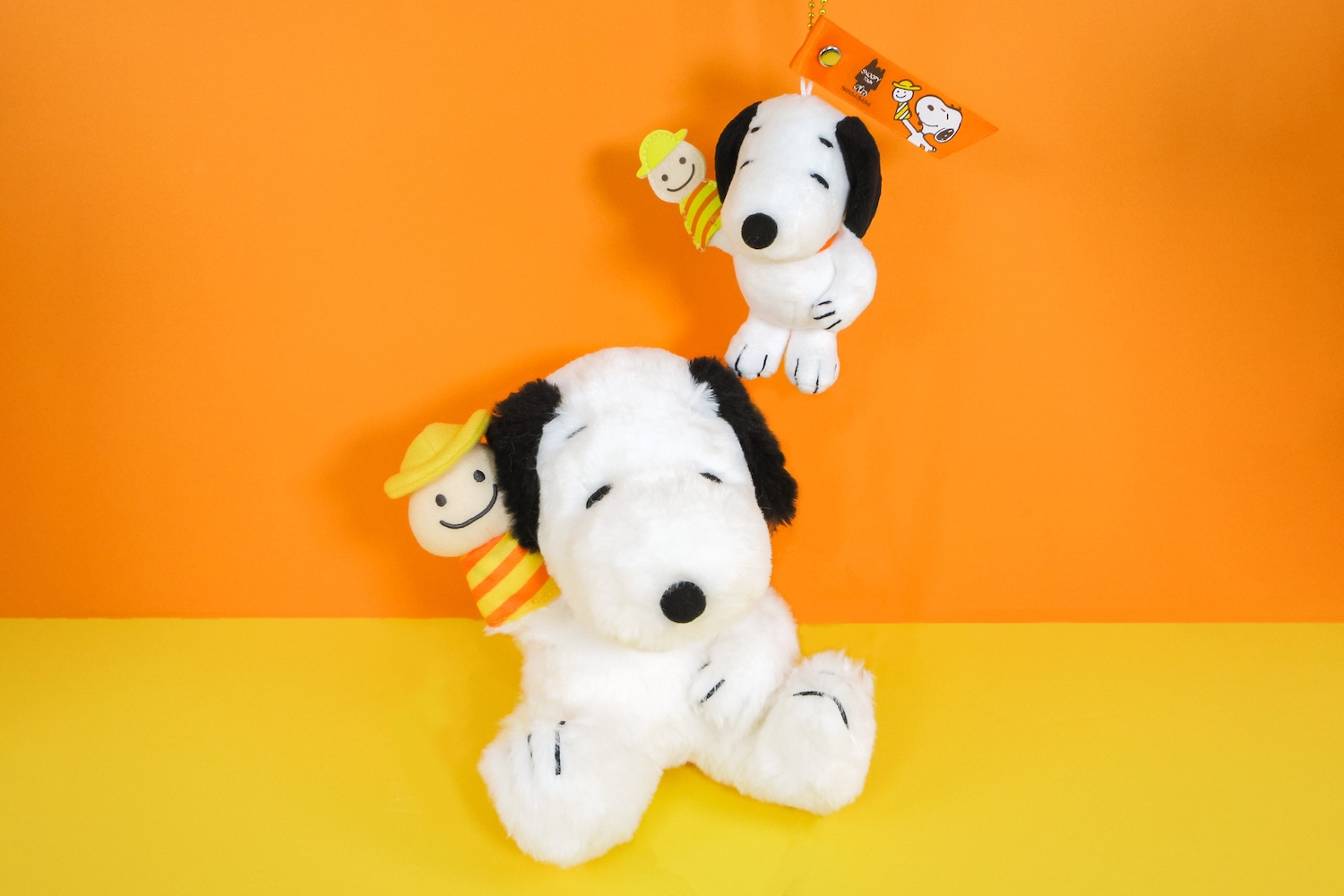 ぬいぐるみとカラビナマスコットは、心斎橋パルコ店にある、パペットをつけたスヌーピーのスタチューをオマージュされているんです。