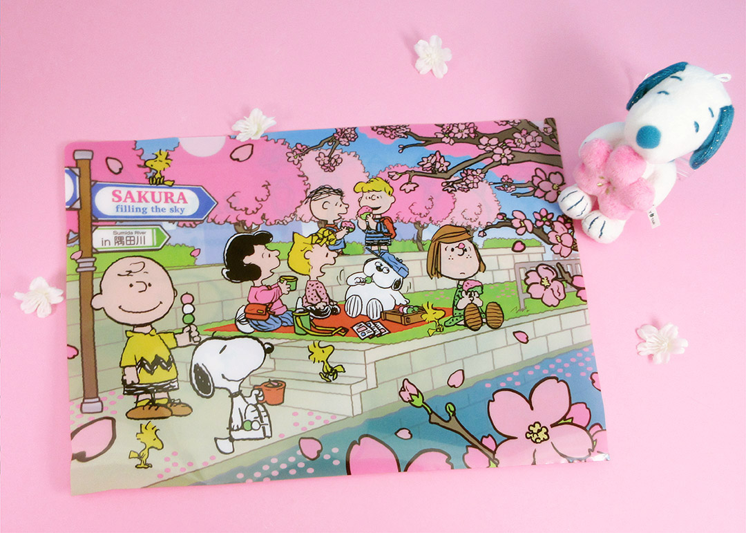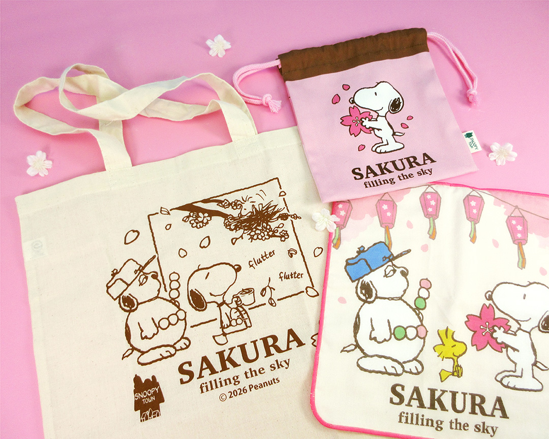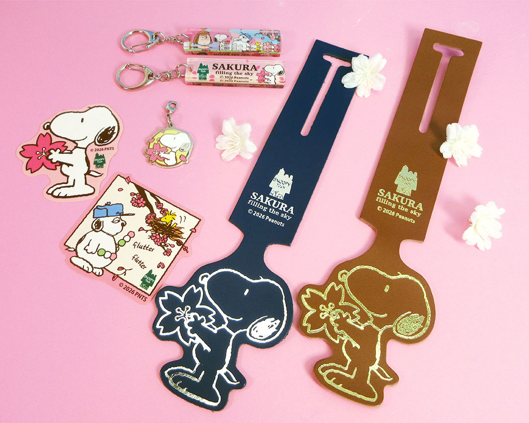 桜を抱きしめたスヌーピーのラゲッジタグは