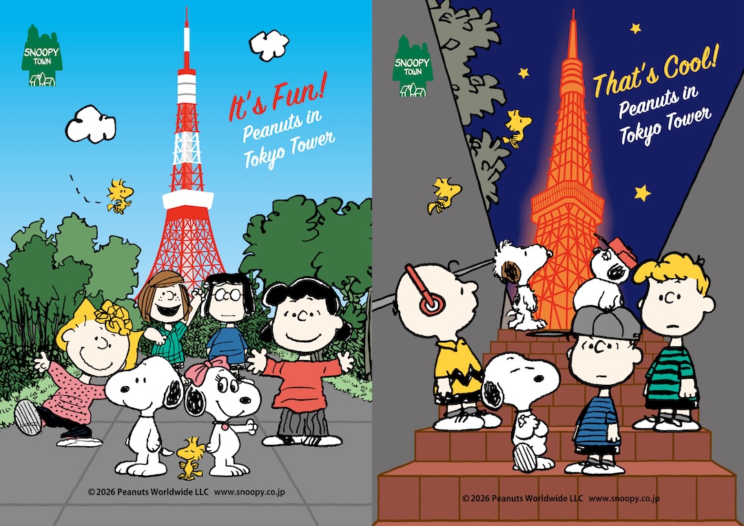 東京タワーとクールに決めたPEANUTSのなかまたち!
