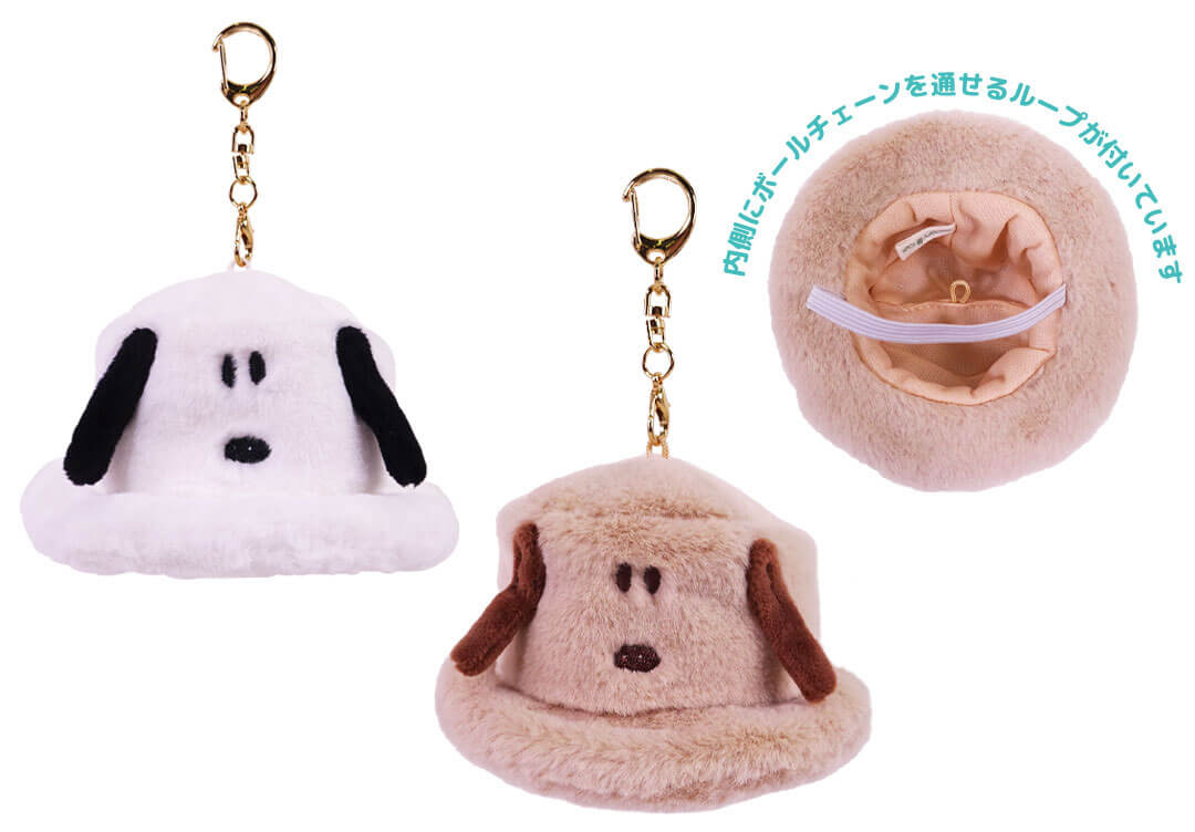 スヌーピーミニ帽子ボアチャーム カラー:ホワイト/モカ 各2,200円(税込)