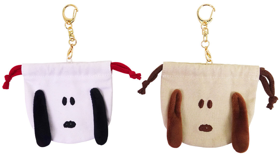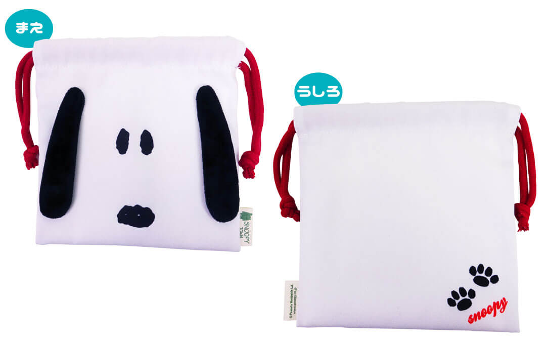 ダイカット型のスヌーピーの耳が付いた巾着。