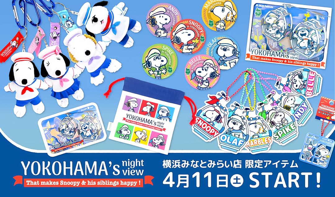 | 2026年4月11日(土)発売予定!! スヌーピータウンショップオリジナル 横浜みなとみらい店限定「YOKOHAMA’s night view」 ※商品の通販、取置に関しては5月11日(月)~とさせていただきます。 通販に関しては、スヌーピータウンショップ横浜みなとみらい店 045-640-1032までお問い合わせください。 ご購入のお客様へ ◎発売初日の販売方法に関して |