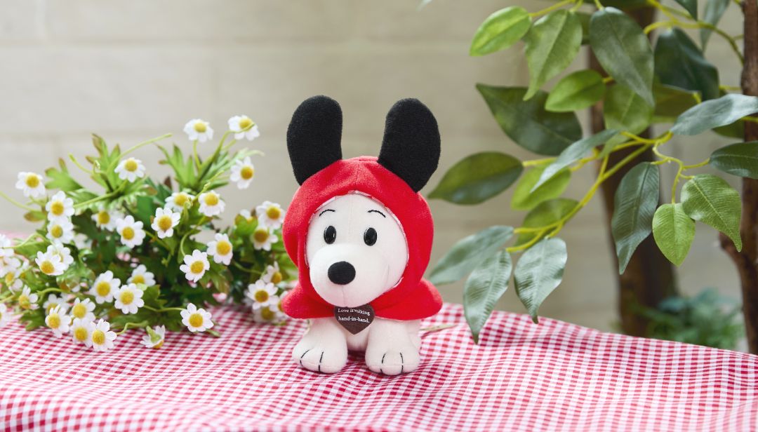赤いケープをかぶったスタイルのレトロンズスヌーピーのぬいぐるみが新登場!